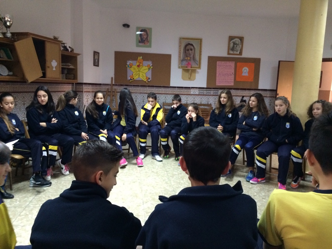El pasado lunes día 12 de enero, los alumnos de 1ºD de ESO tuvieron una mañana de convivencia. Carlos Hernández como tutor y Mª Victoria Navarro como miembro del equipo de convivencias fueron los encargados de estar con los niños durante ese rato de encuentro. Hicieron un alto en el camino para reflexionar y conocerse un poco mejor, y así tener una oportunidad de interiorizar y compartir, que siempre es necesario.